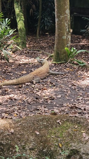 THIS PHOTO ABOVE WAS TAKEN AT THE REPTILE WORLD COMPOUND AT THE SINGAPORE ZOO. PICTURED HERE IS THE RESIDENT KOMODO DRAGON. THE KOMODO DRAGON IS LOOKING TO THE LEFT BECAUSE A ZOO KEEPER CALLED OUT ITS NAME AND IT IMMEDIATELY RAISED UP ITS HEAD AND LOOKED RIGHT AT WHERE THE ZOO KEEPER WAS WALKING. KOMODO DRAGONS ARE ENDEMIC TO SOUTHEAST INDONESIA. WE HAVE NOT VISITED KOMODO ISLAND BUT WE HAVE SEEN KOMODO DRAGONS AT THE ZOO IN JAKARTA. WE HAVE SPENT TIME IN ACEH TO VIST THE ORANGUTAN CONSERVATION CENTER THERE. NOW, VISITING THAT PLACE IS AN ADVENTURE INDEED. CLICK ON THE FOLLOWING LINK TO READ ABOUT OUR EXPERIENCES THERE;
