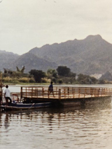 This photo was taken at River Kwai in Thailand. I was standing on the infamous Bridge over the River Kwai when I took this photo. It is known as the “Death Bridge” because it was built by the Japanese during World War II. The Japanese army used POWs and Asian slave laborers to build the bridge. The trains were transporting cargo into Myanmar to support the Japanese troops who were occupying Eastern Thailand, Myanmar, and China, and were preparing to invade India. Something like 100,000 POWs and slave laborers died while building the railway. When I visited, I rented a bike in Kanchanaburi and crossed the bridge on foot while walking the bike. After passing an area where elephants were kept, I rode the bike to a cave temple called Wat Tham Khao Pun which was used by the Japanese as a military hospital during World Way II. Anybody can visit the extensive cave complex (nine unique cave chambers have individual shrines with Buddha statues) from 0900 until 1930 everyday. On Sunday, it is actually open from 0730 until midnight. The entrance fee is 30 Bhat. The distance from Kanchanaburi to Wat Tham Khao Pun is about five miles or six kilometers. It made the bike ride exquisitely beautiful.