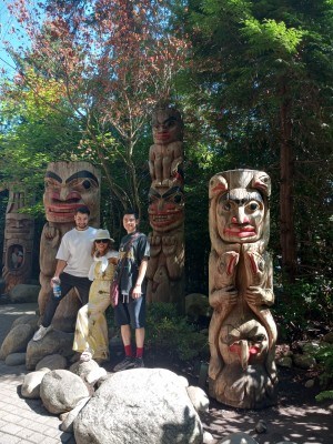 One of our most adventurous car trips was from From Portland Oregon To Vancouver Canada. Backstory #2 The first photo here was taken at Capilano Suspension Bridge Park in the area called Kia’palano This name is from the Squamish language and it means “beautiful river”. The totem poles are authentic, telling stories from Coast Salish and Haida traditions.