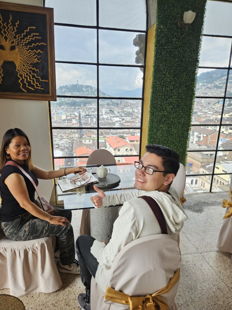 In one of the towers of Basilica del Voto National, there is a cute Cafe with a grand view of Quito where you can order many things including ice cream or beer.